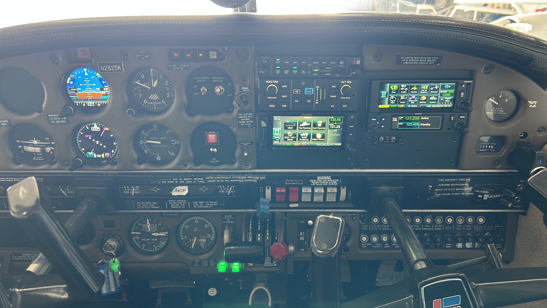 When the HFC acquired N2825K, the panel was dated. The club added a state-of-the-art panel to improve the Arrow IV Turbo. The panel includes two GI275 flight instruments, GFC500 autopilot, GTN650xi GPS/NAV/Comm, GNX375 backup NAV and transponder, and much more